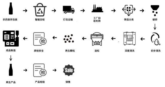 我公司依托完整产业链条与丰富的生产运营经验,被山东省农业农村厅与山东省生态环境厅共同认定为农药包装废弃物资源化利用单位,具备完整的农药废弃包装物综合利用能力。为做好农药包装废弃物前端回收工作,经深度开发与设计,公司研发了农药包装废弃物数字回收系统,形成了从废物源头收集、规范化处理直至新产品生产的闭环式循环经济产业链,真正实现了农药包装废弃物的安全循环利用。